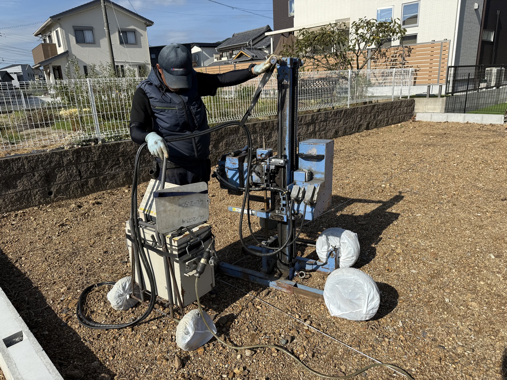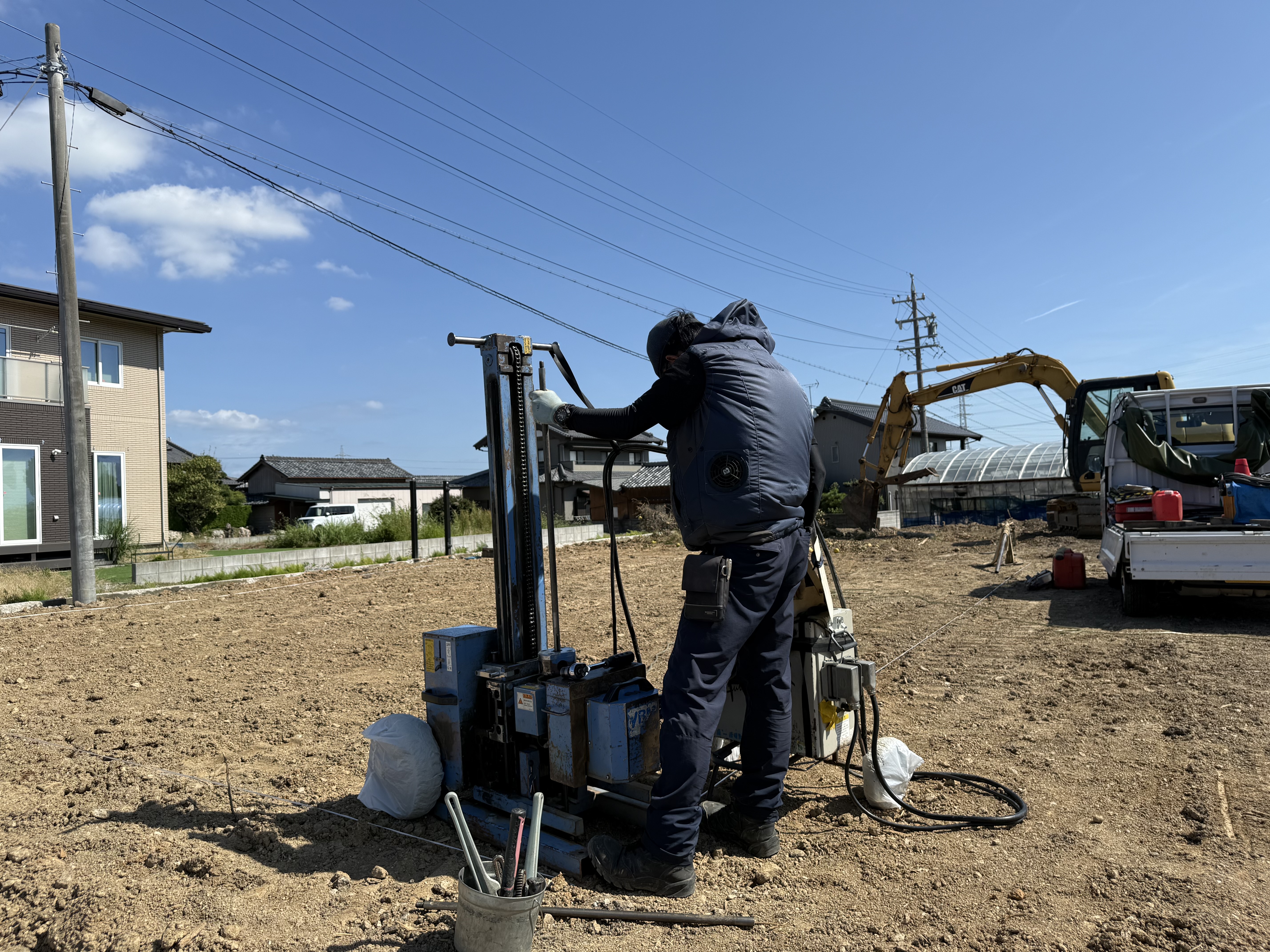 本日の朝イチより、来月着工予定のK様邸・年明け着工予定のH様邸それぞれの地盤調査を行いました。