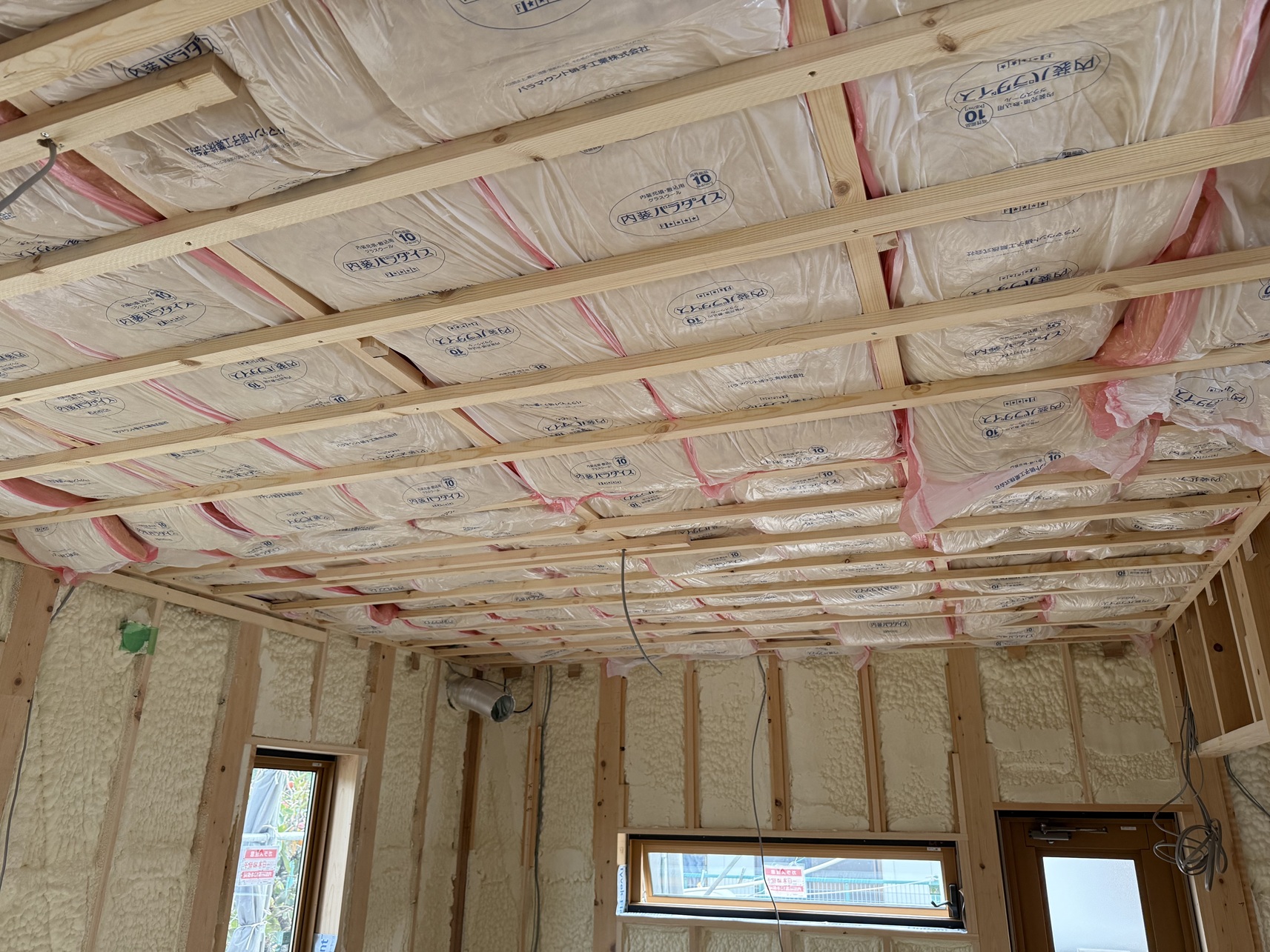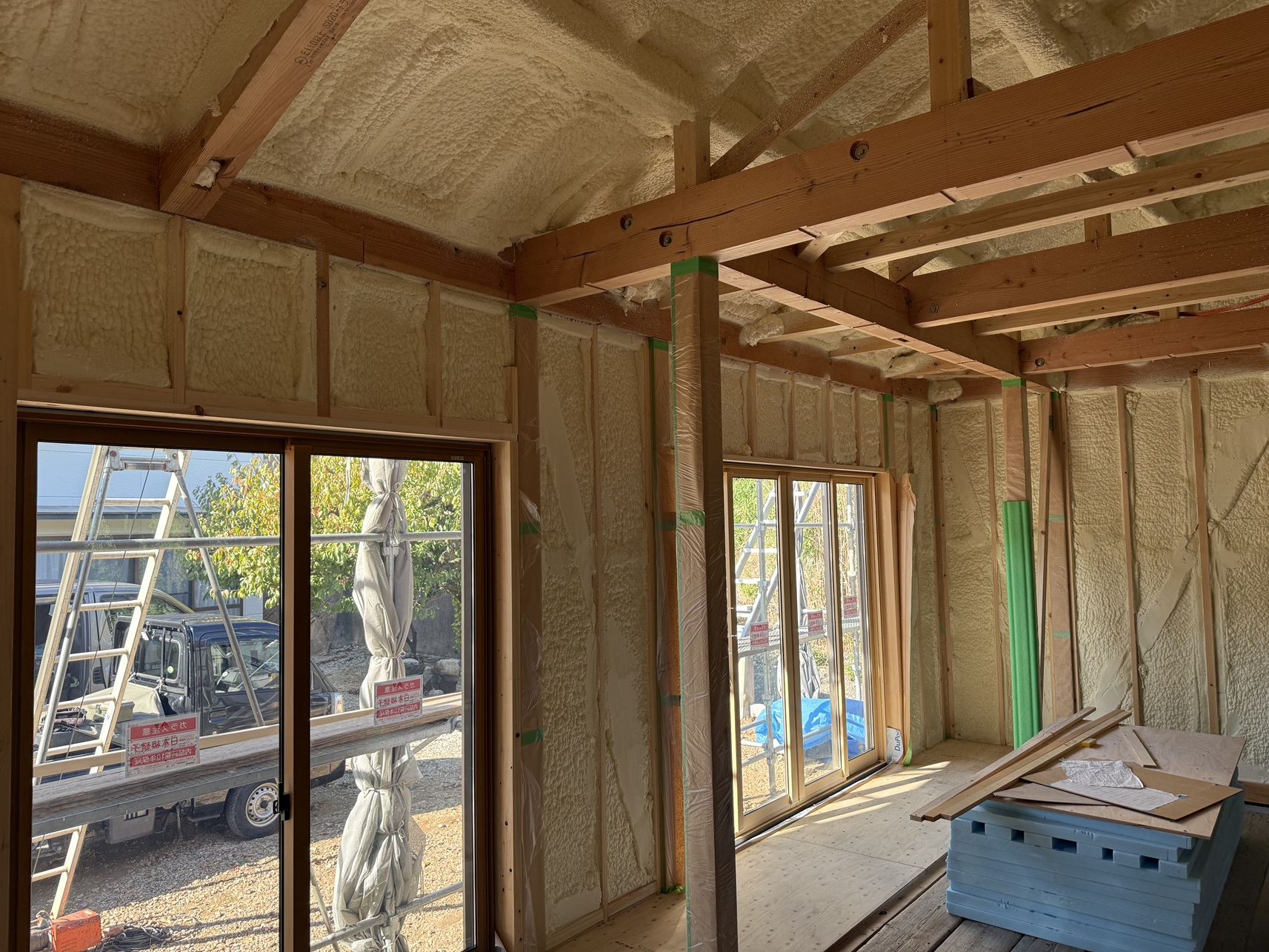 室内の方は先日発泡ウレタン吹付施工が完了しました。