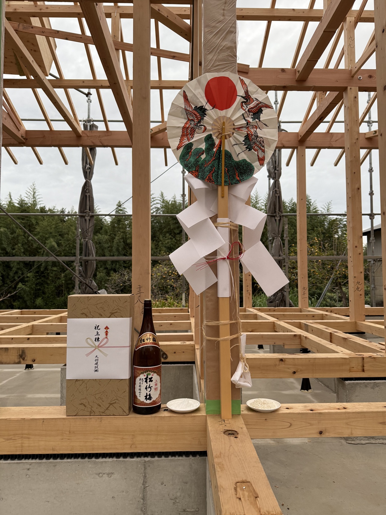 一昨日の土曜日、T様邸現場にて建方及び上棟式を執り行いました。