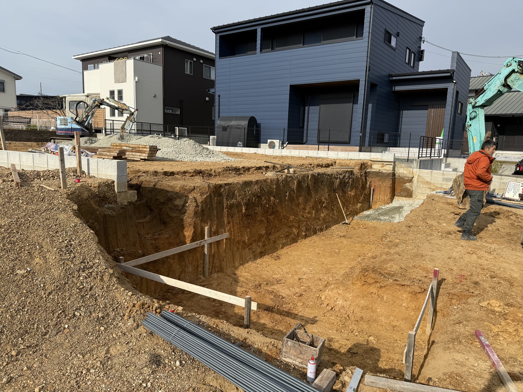 今回は擁壁工事をしながら並行して基礎工事の方も行う工程となっています。