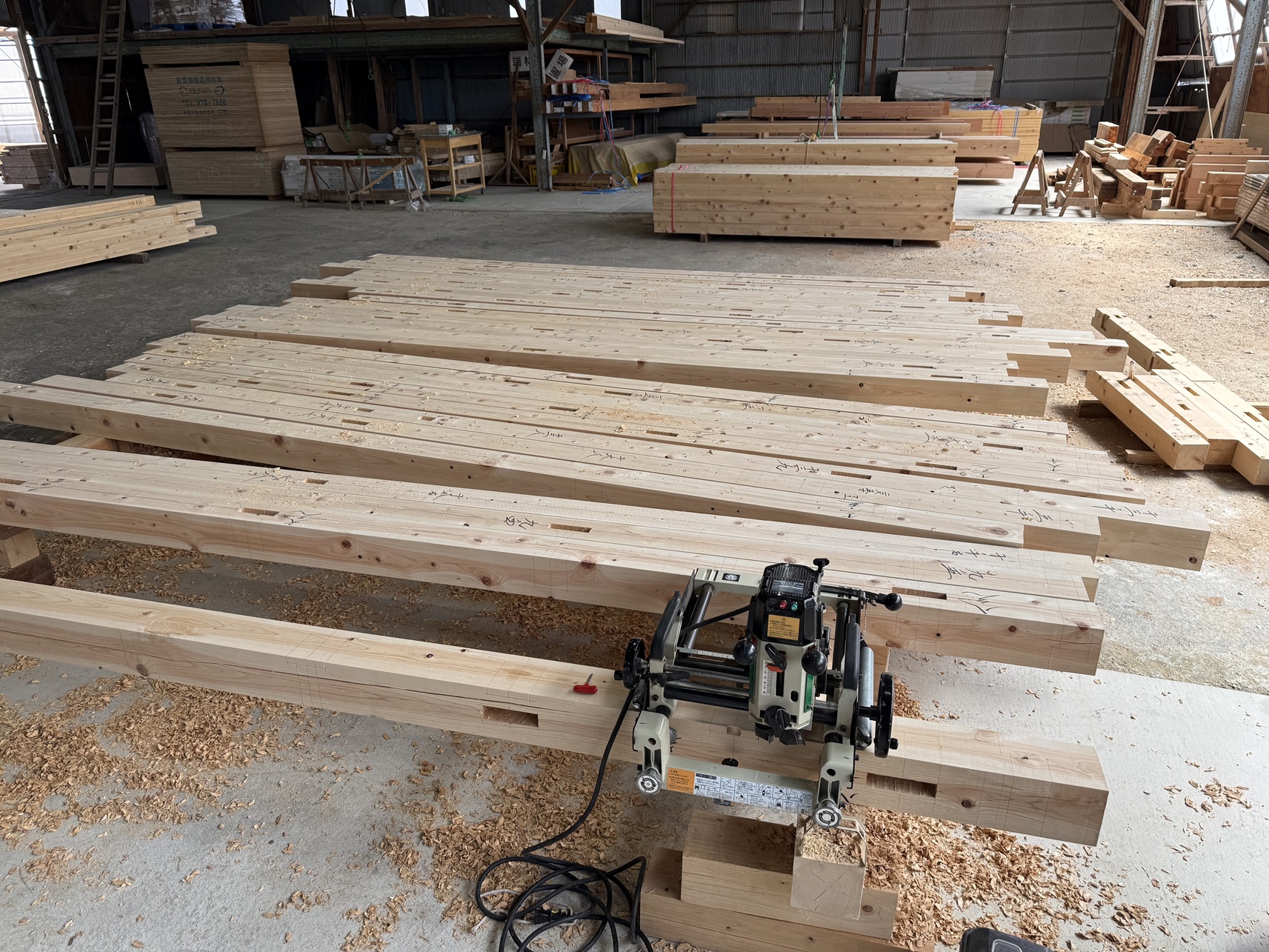 当社作業場内では大工さん達が墨付けや刻み作業にあたってくれています。