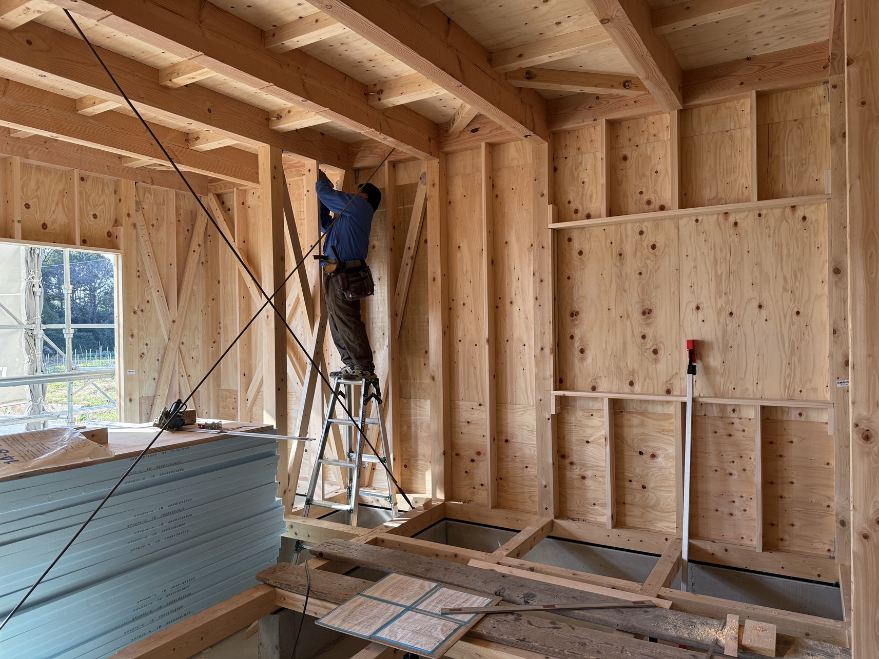 今現在K様邸現場状況の方はというと、上棟後2週間弱経過したところです。