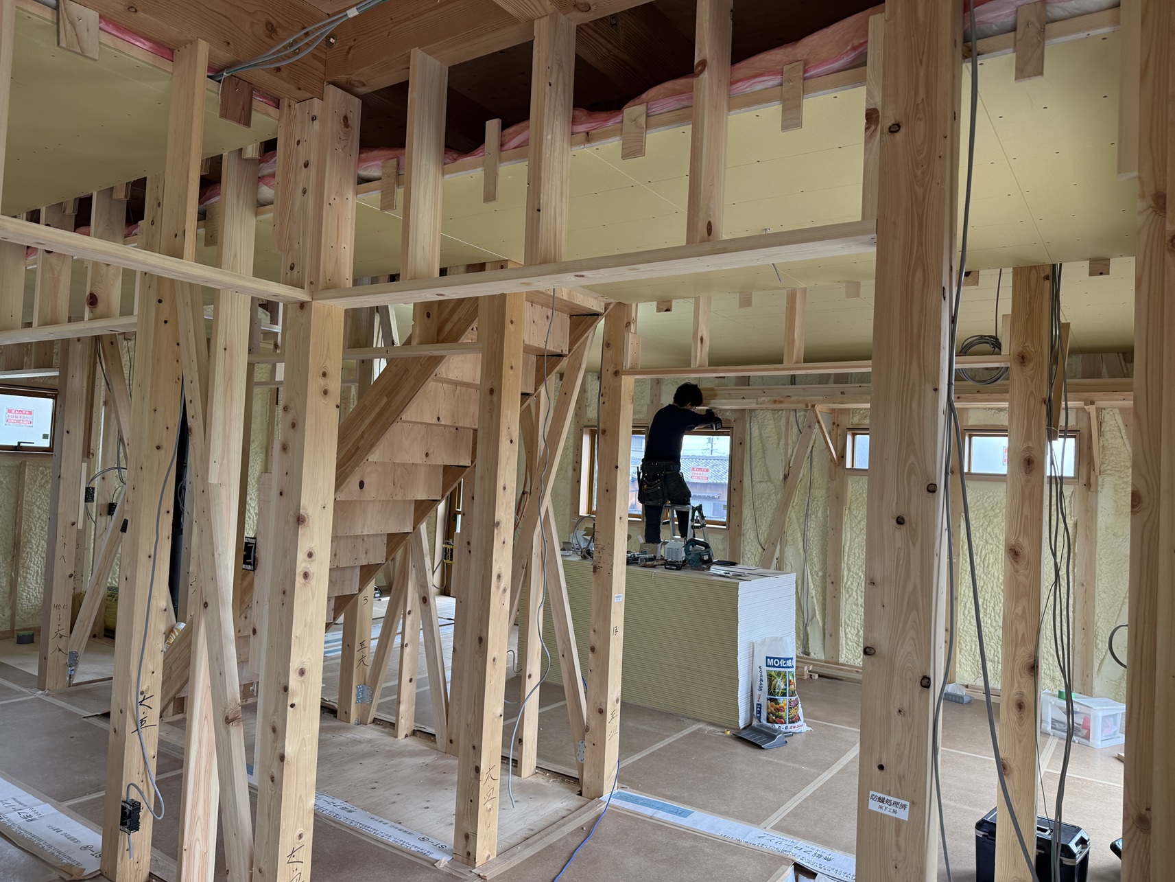 室内の方は当社大工さん達が連日作業にあたってくれています。
