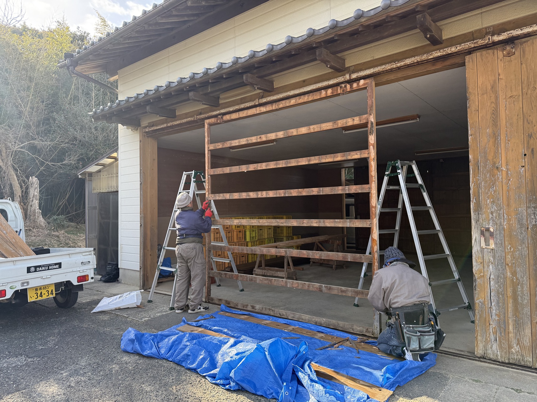 一昨日より市内O様邸長屋門木製引戸(2枚)の経年劣化に伴う改修工事に着手しました。
