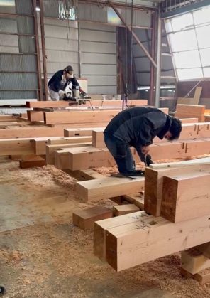 今現在当社加工場内では12月6日建方予定のK様邸刻み作業を担当大工さん達が行っています。